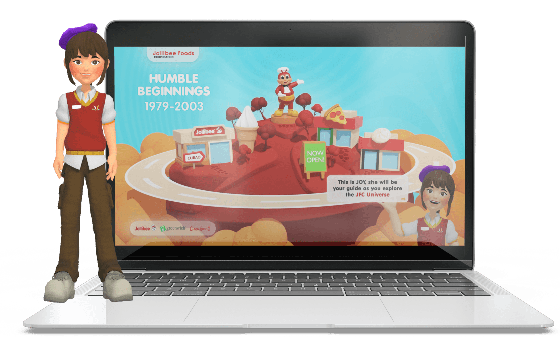 It invited people to explore JFC's history in a fun, interactive way. We designed it like a universe with different Jollibee brands as floating islands.